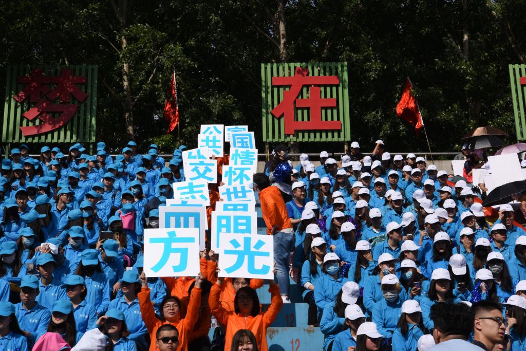 在开幕式上,伴随着运动员进行曲,各学院代表队逐一入场接受检阅。公司受阅同学以昂扬的精神面貌、嘹亮的口号、整齐的步伐走过主席台。“公共外交,志在四方,家国情怀,世界眼光”,随着口号声,看台上的同学们统一举起口号牌,向全校师生一展学院精神。